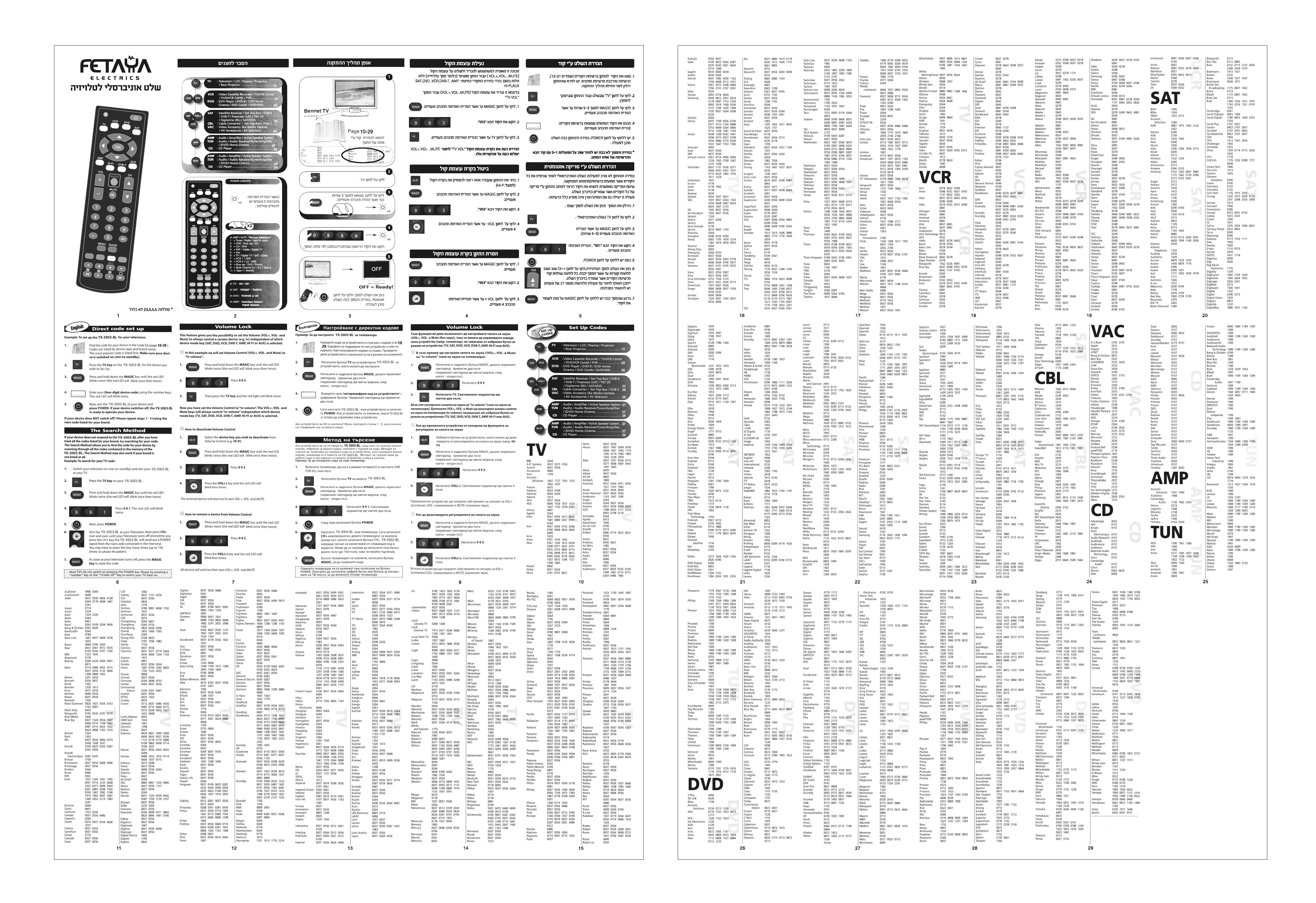 שלט רחוק אוניברסאלי לטלוויזיות FETAYA 4502 פתיה שלט רחוק ‏לטלוויזיה 8 מכשירים בשלט אחד שלט אוניברסלי לטלוויזיה TV טי וי פתיה Fetaya
