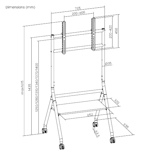 עם התאמה למסכים גדולים במיוחד, מבנה עמיד, מדף אחסון מובנה וגלגלים איכותיים – מדובר בפתרון מתקדם שמתאים למגוון רחב של שימושים ביתיים ומקצועיים כאחד.