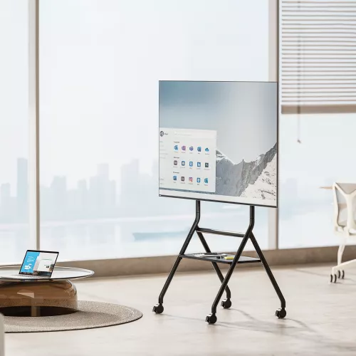 השילוב בין פונקציונליות לעיצוב עם עגלת הטלוויזיה העומדת בעומס של עד 80 ק"ג. המבנה החזק תומך ברוב הטלוויזיות בגודל 37"-86", בעוד הגובה המתכוונן וההתקנה הפשוטה מעניקים לה גמישות שימוש. מדף האחסון הנוח מוסיף פרקטיות, וגלגלים עמידים מבטיחים ניידות ויציבות לשמירה על סביבת עבודה פעילה ושיתופית.