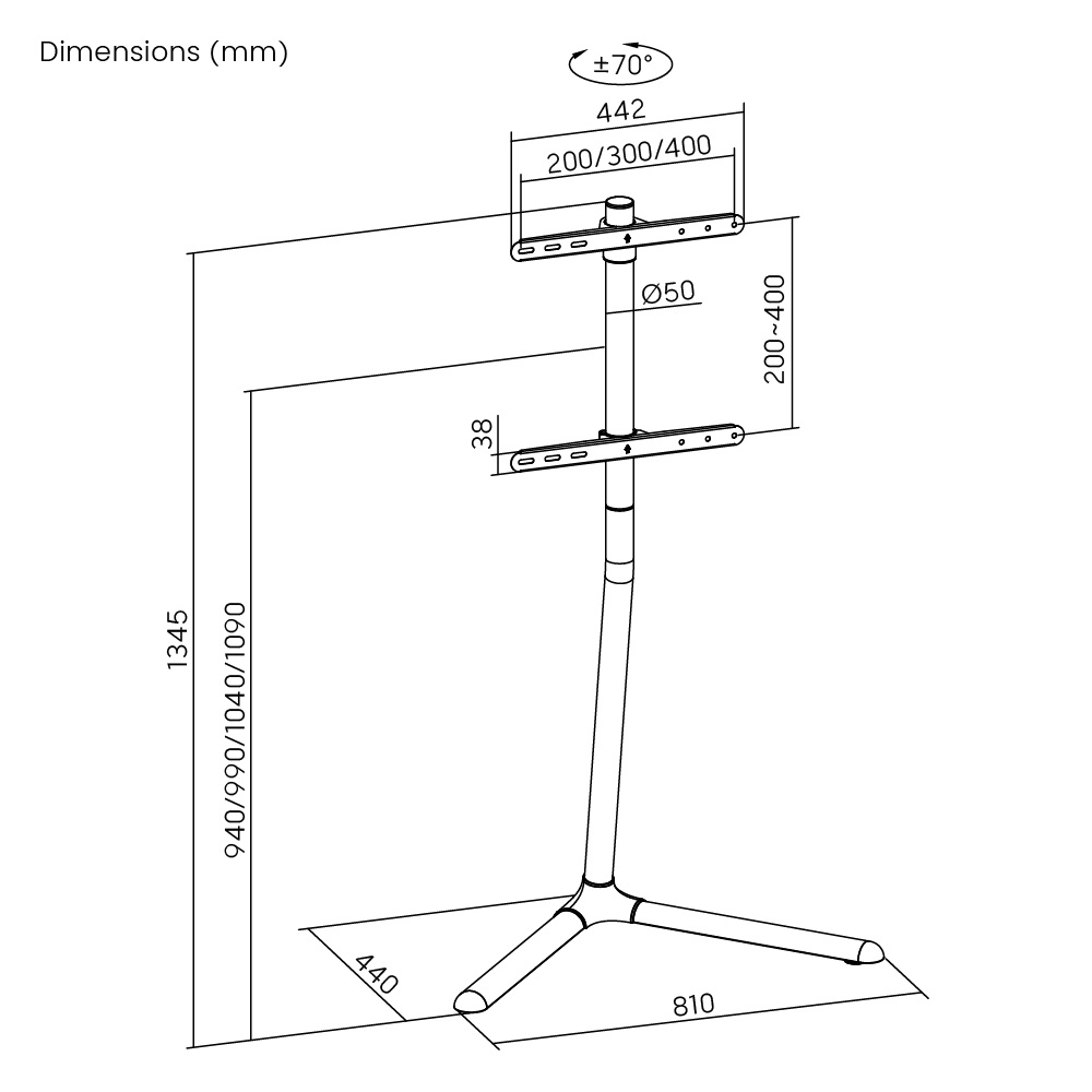 • גודל מסך מתאים: 32"-70"